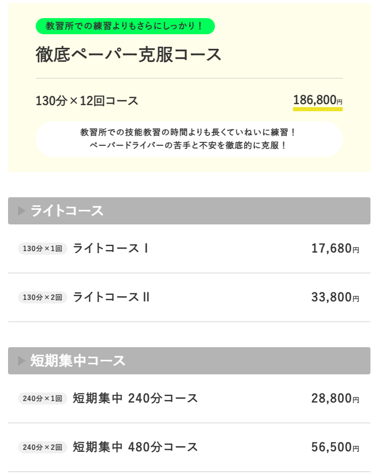 ペーパードライバー講習の他にも様々な講習を行なっておりますので参考にしてみてください。